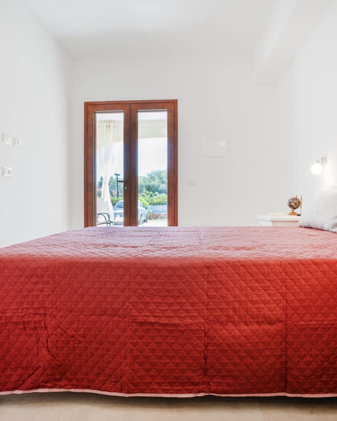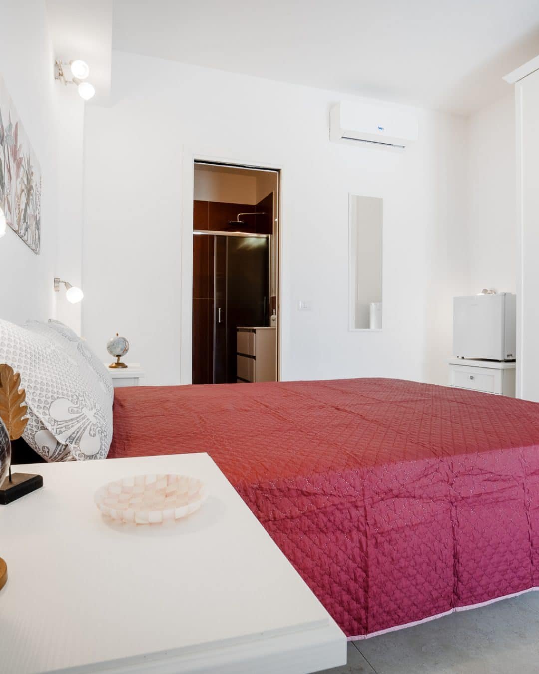 Una camera matrimoniale pensata per le coppie che vogliono tutto il comfort. Bagno privato, terrazza, e San Teodoro fuori dalla finestra.